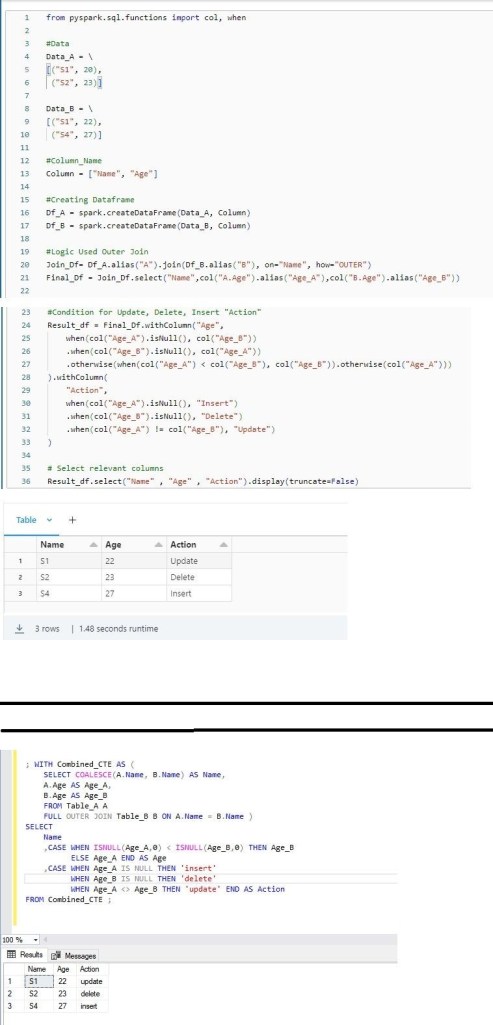 Our mission was to determine the differences between these tables and generate a Action between Update, Delete, Insert๐ and here’s the solution we came up with :