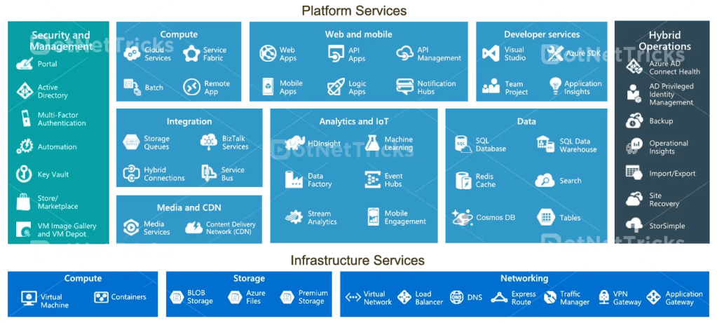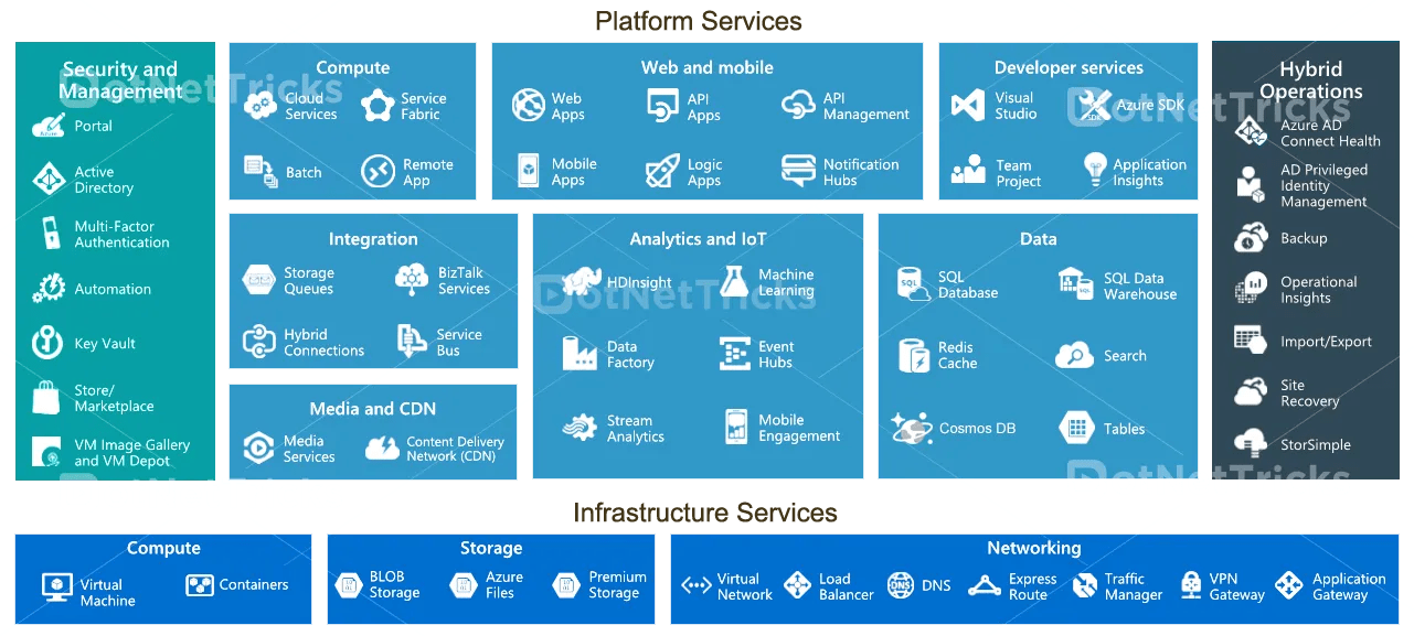 There are numerous Azure services across various categories. Here, we will provide a brief overview of some key services in each category: